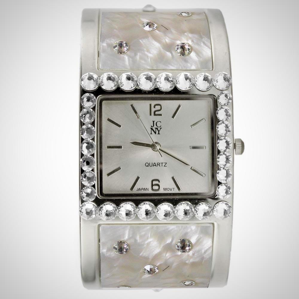 - Mother-of-pearl dial with JCNY logo at 12 o'clock position