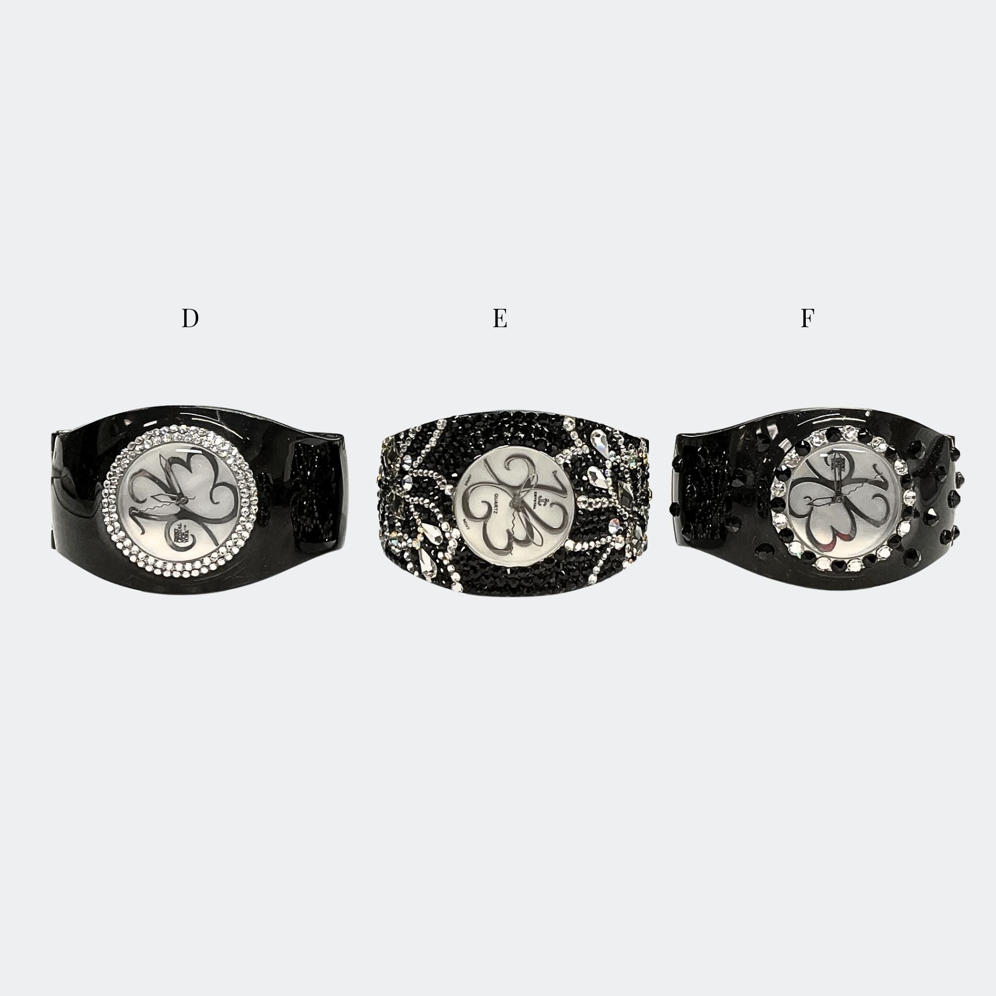 - Elegant black-tone watch featuring sparkling crystals accents on both the bezel and bangle