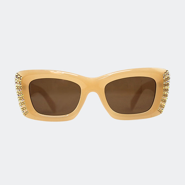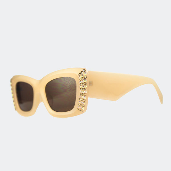 Jimmy Crystal's skilled craftsmanship is exquisitely displayed with the sparkling accents of this product, providing a lavish and sophisticated flair. With a rectangular shape and opaque neutral hue, these glasses measure 5.75" wide and offer 100% UVA/UVB protection, along with...
