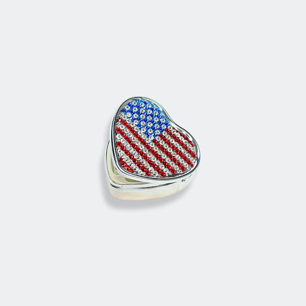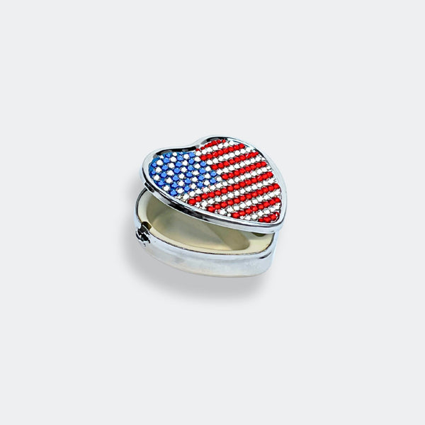 A plated exterior and eye-catching crystal embellishment, measuring from 1" to 2 inch in size for pill boxes with mirror. To ensure optimal protection while carrying, the product is provided with a pouch or soft cloth bag. PLEASE INDICATE INITIAL...