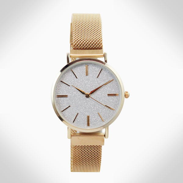 Elegant metallic tone watch featuring sparkling crystals accents on the watch face This product provides unparalleled aesthetics to transcend elegance Stainless steel case back Magnetic metal wristband. One size fits all Case size: 32mm, Strap width: 14mm, Watch length: 9 inch PC...