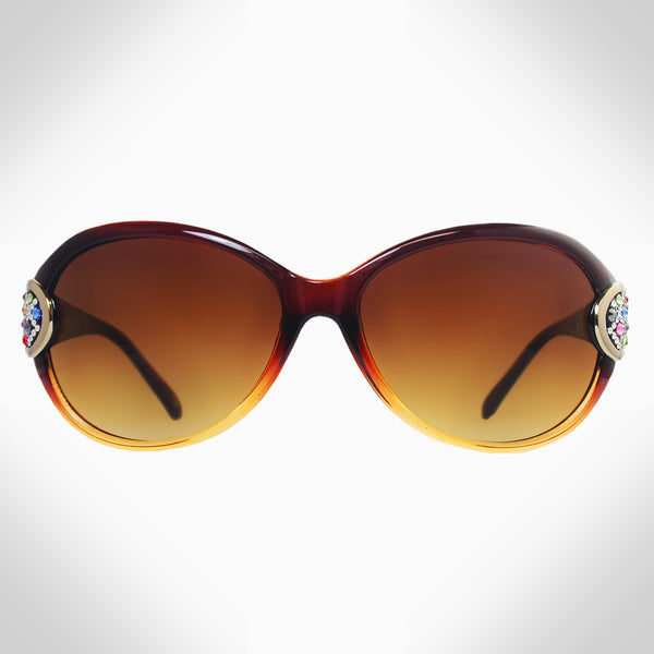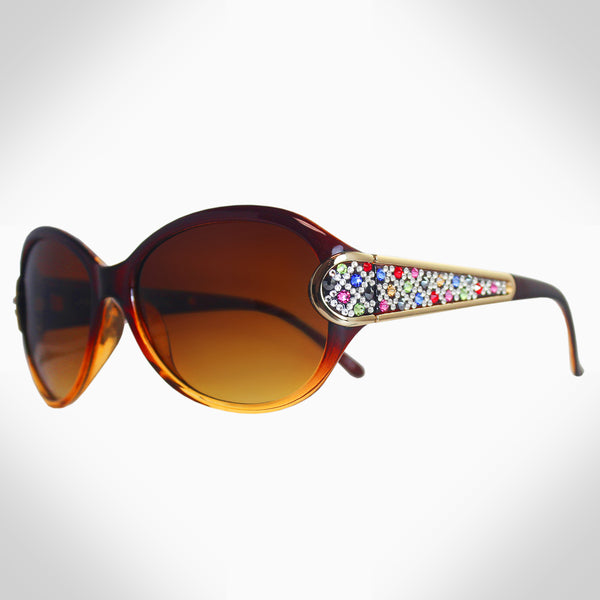 Injection frame Tinted lenses Features stunning crystals, which were set by Jimmy Crystal's expert craftsmanship. This product provides unparalleled aesthetics to transcend elegance. Offers 100% UV/UVB protection Include a pouch, clean cloth, and a hard case