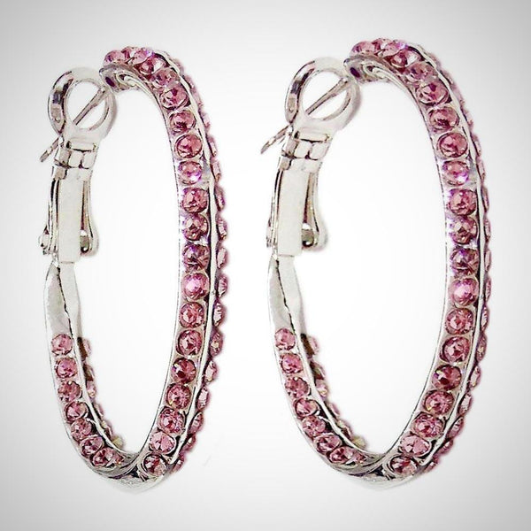 PRODUCT DETAILS Embellished with sparkling crystals, this earring adds a distinctive touch to your look Feature stunning crystals combine aesthetics with expert craftsmanship that will take your wardrobe to the next level Silver plated Round hoop. 1-1/8" Dia. Nickel &...