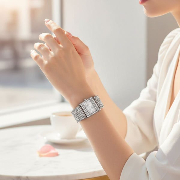 Elegant silver-tone watch featuring sparkling crystals all over the entire watch Embellished with crystals, which are set by Jimmy Crystal's expert craftsmanship. This product provides unparalleled aesthetics to transcend elegance. Stainless steel case back Miyota Japanese movement Nickel & lead-free...