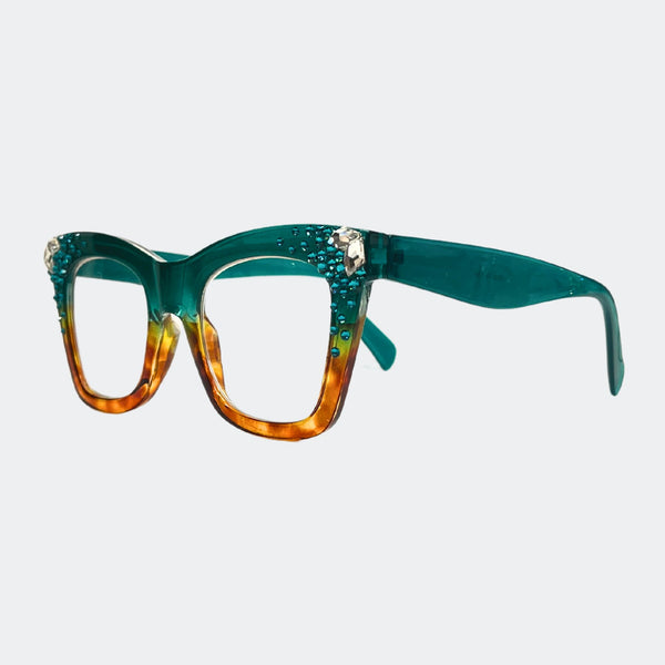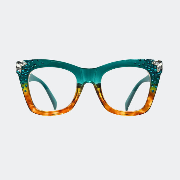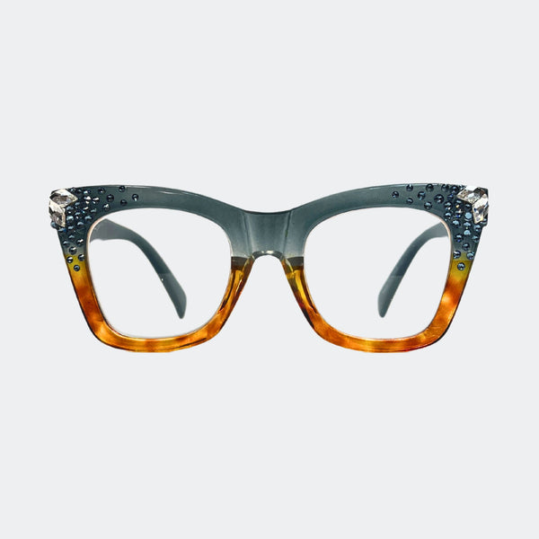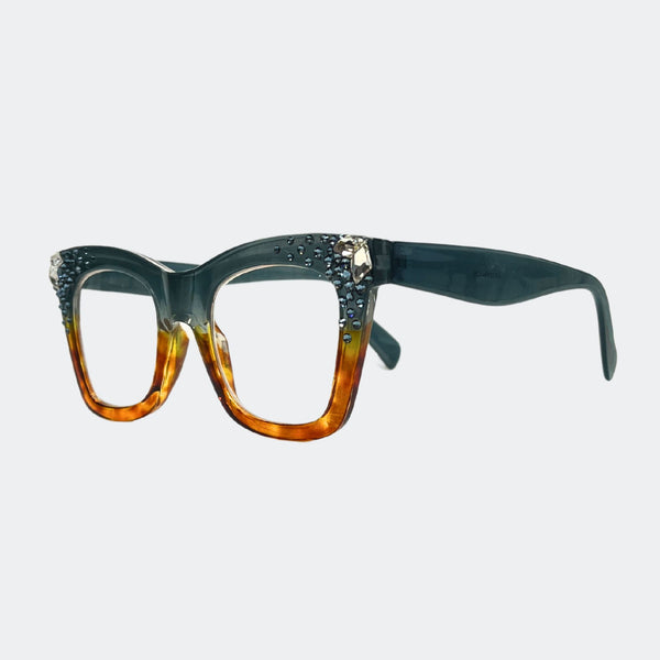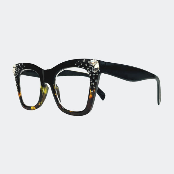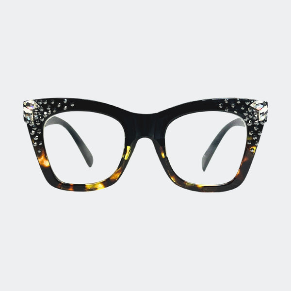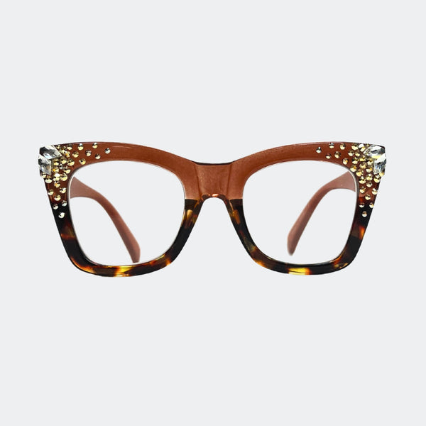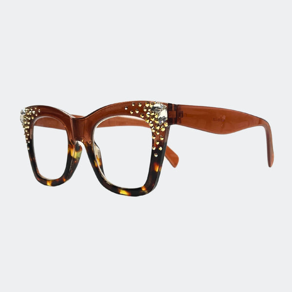 This stylish frame features hand-placed crystals, adding a touch of luxury to these lightweight, high-quality reading glasses. With a 5.5 inch width, this design exudes elegance and comes with a case and pouch for convenience.