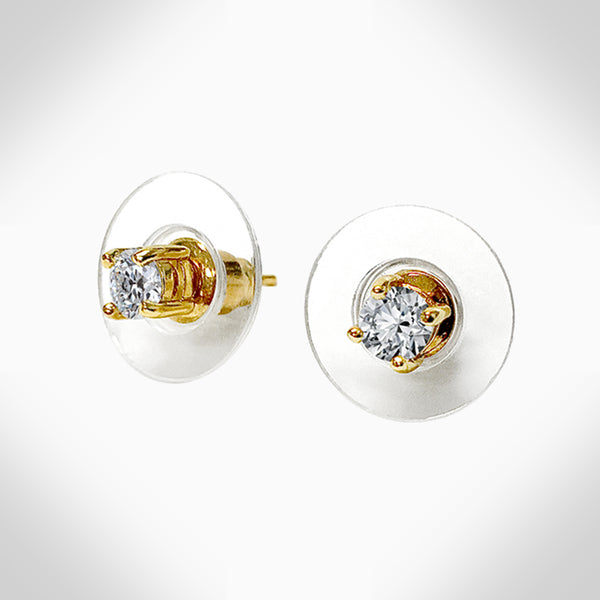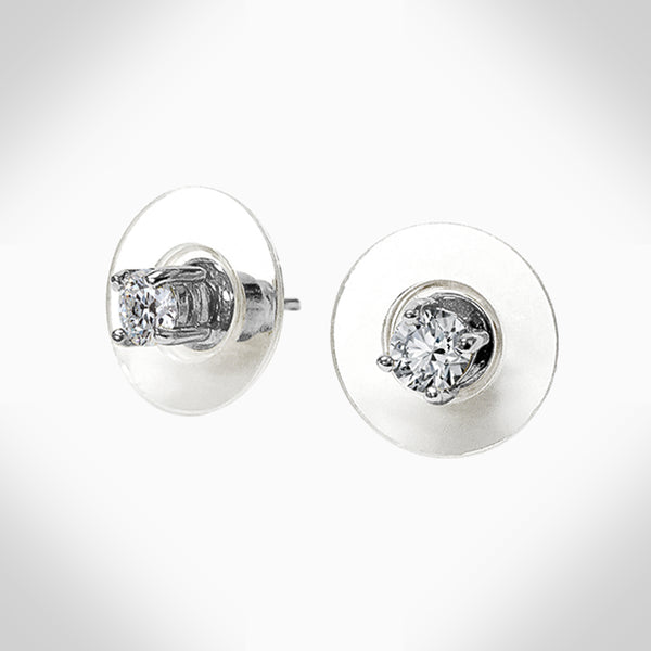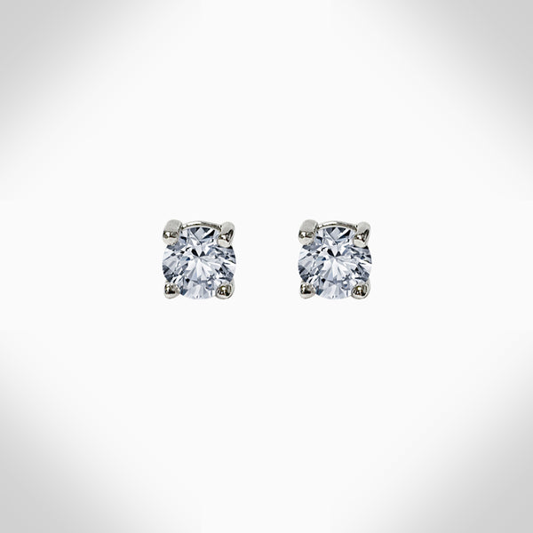 Round, Small, White crystal Rhodium-plated or Gold plated 4mm diameter Nickel & lead-free Store jewelry in an original pouch or soft pouch to avoid scratching. Polish frequently with a soft cloth Includes both a box and a pouch