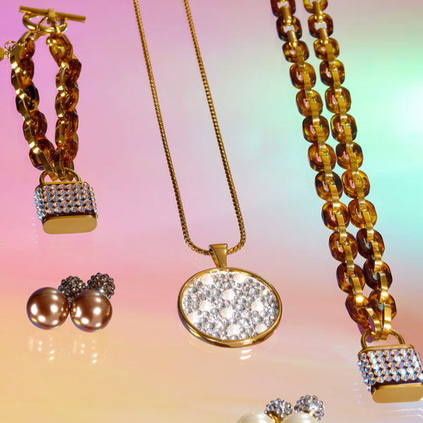 Embellished with sparkling crystals, this elegant interlock necklace adds a distinctive touch to your look Features stunning crystals - combining aesthetics with expert craftsmanship to take your wardrobe to that next level Lightweight Lucite materialĀ 18" length Rhodium or GoldĀ plated...
