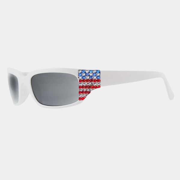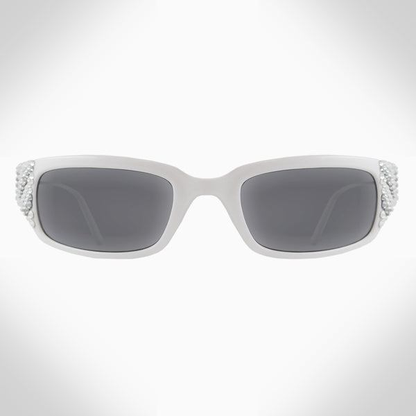 Features stunning crystals, which are set by Jimmy Crystal's expert craftsmanship. This product provides unparalleled aesthetics to transcend elegance. Injection frame Offers 400 UV protection Includes both a case and a pouch