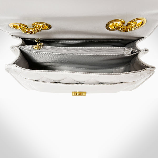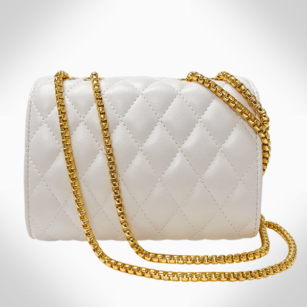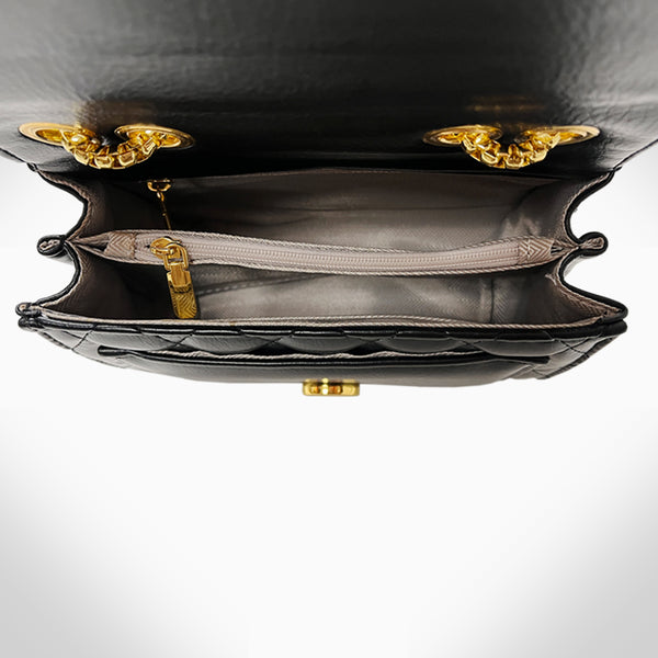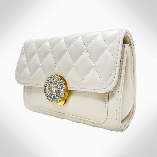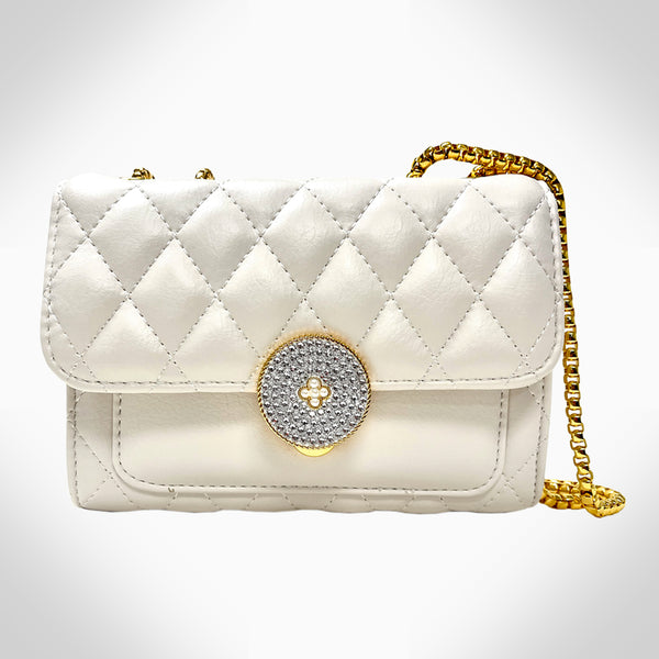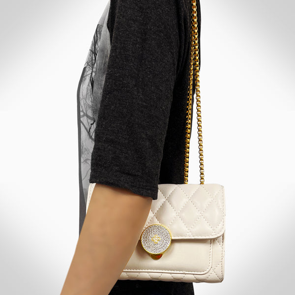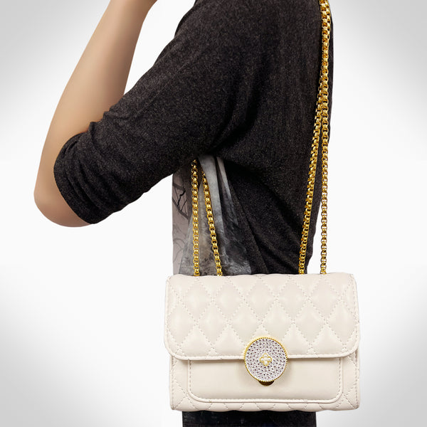 This finely crafted COLETTE - PJ354 women's crossbody shoulder/corssboday bag is constructed with genuine cowhide leather, and is embellished with beautiful crystals. It features 2 card slots, 2 compartments, 2 zipper pockets, a metal chain, and a classic clasp closure....