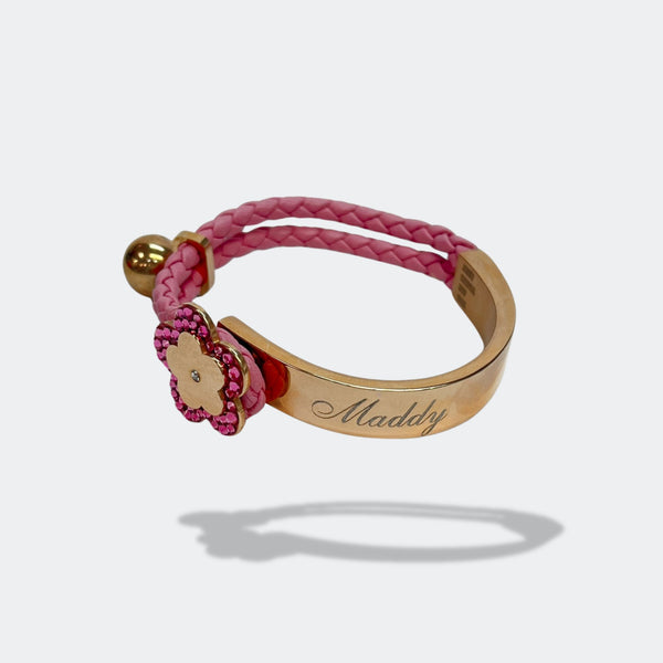 A combination of braided leather and stainless steel floral cuff bracelet instantly creates a unique look. This gorgeous bracelet sparkles with refined crystals and feminine rose gold plated metal. Treat yourself or someone else to this dream bracelet. PU...