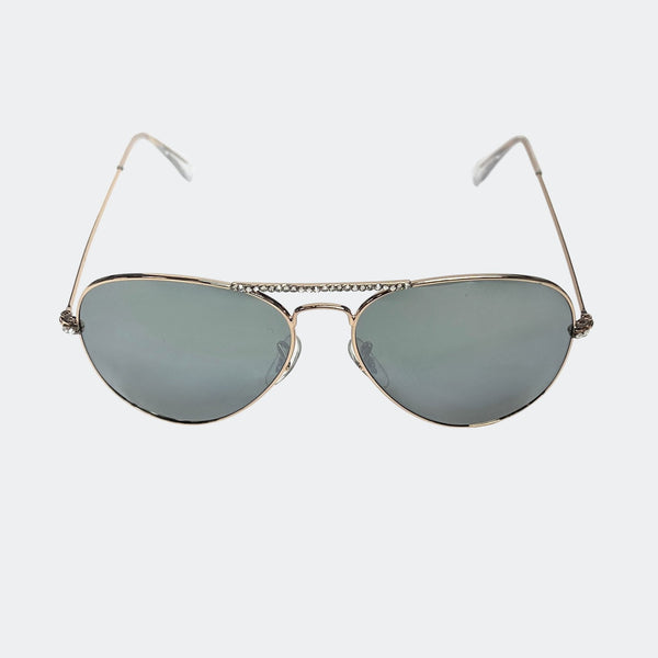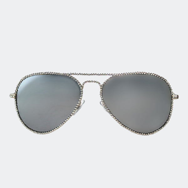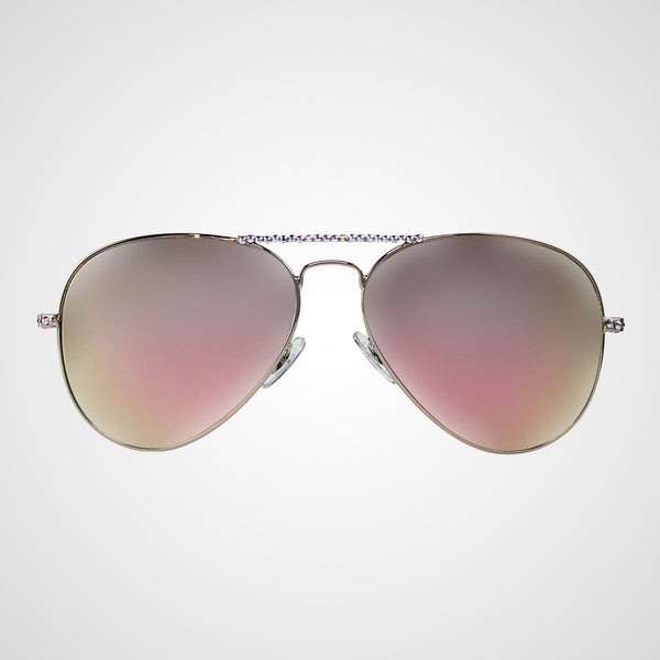 The OXFORD - GL1707 Crystal Aviators boast metal aviator construction with Revo lenses and PVC nose pads for secure placement with minimal pressure. Slim plastic temple tips provide all-day comfort. Adorning the frame are stunning crystals, expertly crafted by Jimmy...