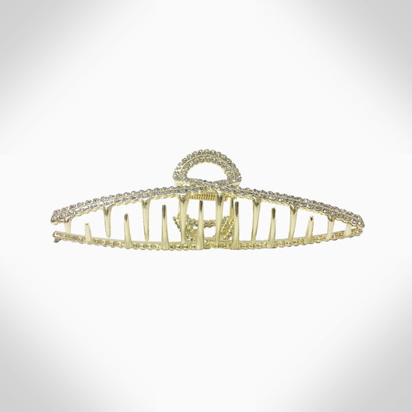 Embellished with sparkling crystals, this charming hair clip adds a distinctive touch to your look Features stunning crystals - combining aesthetics with expert craftsmanship to take your wardrobe to that next level About 4.5x2x1.6" Metal Store jewelry in an original pouch...