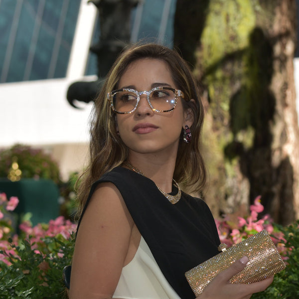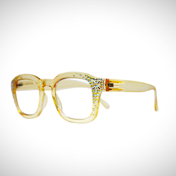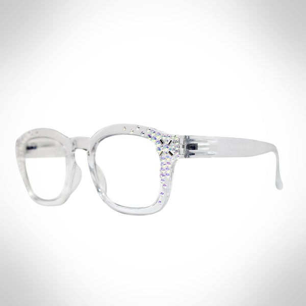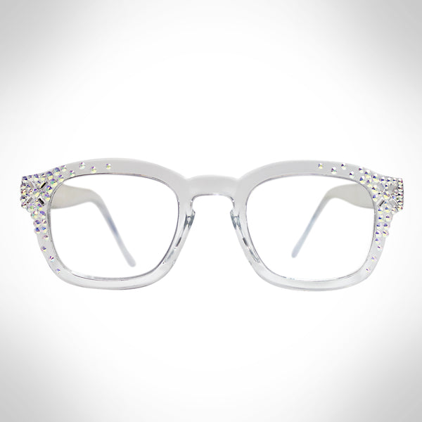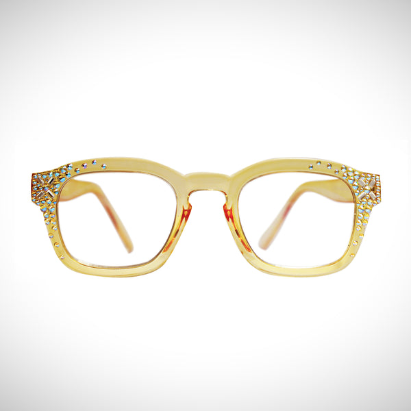 Injection translucent frame with blue light blocking lenses Use the most impact-resistant material available for the lens to offer maximum eye protection Embellished with crystals, which are set by Jimmy Crystal's expert craftsmanship. This product provides unparalleled aesthetics to transcend...