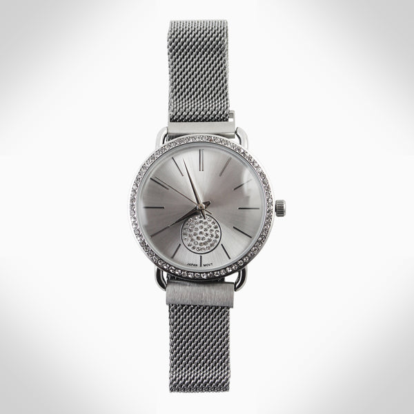 Elegant watch featuring sparkling crystals accents on the watch face Embellished with crystals, which are set by Jimmy Crystal's expert craftsmanship. This product provides unparalleled aesthetics to transcend elegance Stainless steel case back Magnetic metal wristband. One size fits all Watch...