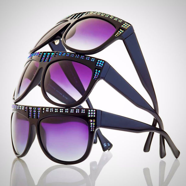PRODUCT DETAILS BELLADONNA - GL1164 Crystal Oversized Handmade frame is cut from a single sheet of acetate to maintain consistency of color Polarized lenses are made with CR-39 for maximum vision protection against harmful sun rays Embellished with crystals, which are...