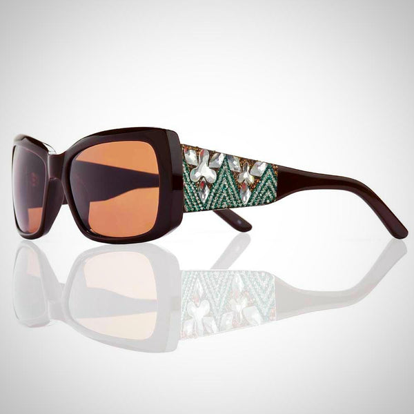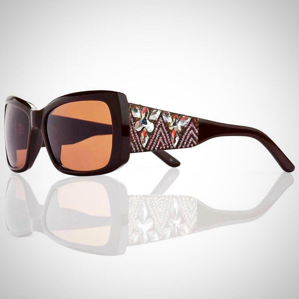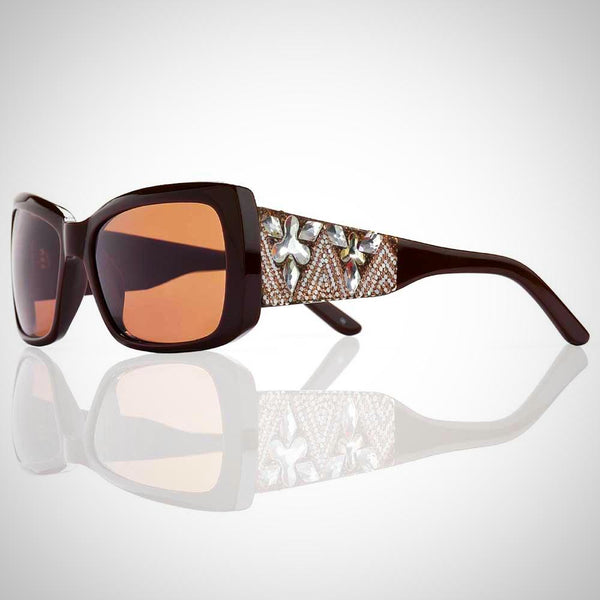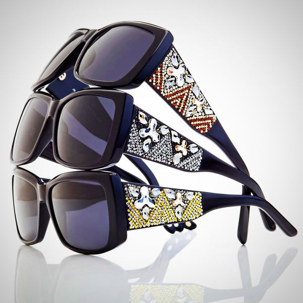 Handmade frame is cut from a single sheet of acetate to maintain consistency of color Polarized lenses are made with CR-39 for maximum vision protection against harmful sun rays Embellished with crystals, which are set by Jimmy Crystal's expert craftsmanship....