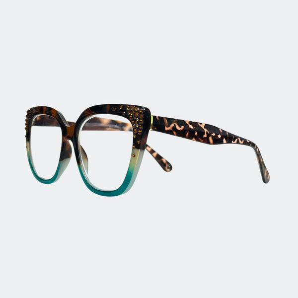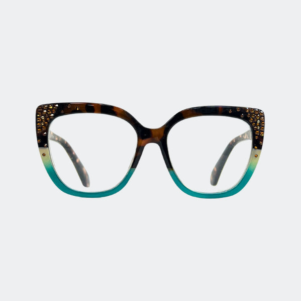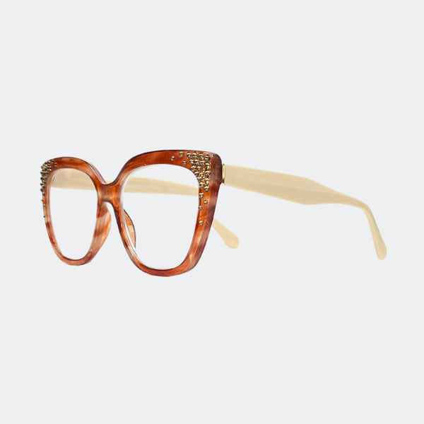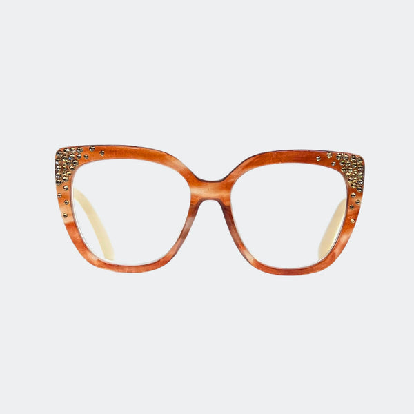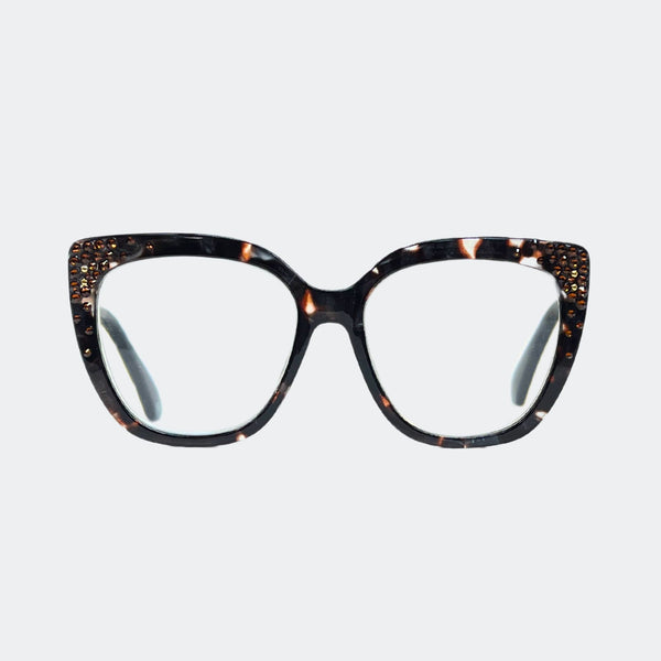 This stylish frame features hand-placed crystals, adding a touch of luxury to these lightweight, high-quality reading glasses. With a 5.5 inch width, this design exudes elegance and comes with a case and pouch for convenience.