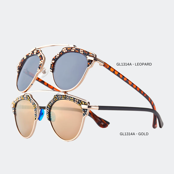 HELENA - GL1314 Crystal Cateyes Injection frame, mirrored or regular lenses made with a selection of multi colors PVC nose pads prevent slipping and minimize pressure against the nose Features stunning crystals, which are set by Jimmy Crystal's expert craftsmanship....