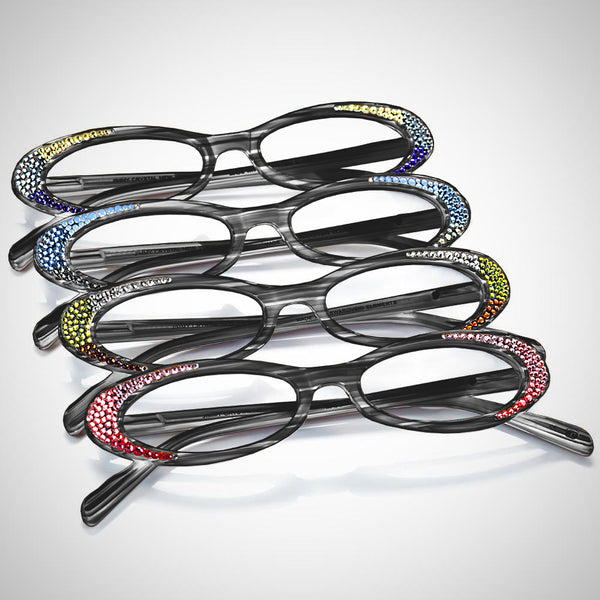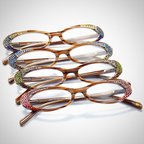 Handmade frame frame Polycarbonate lenses use the most impact-resistant material available for eyewear to offer maximum eye protection Features stunning crystals, which are set by Jimmy Crystal's expert craftsmanship. This product provides unparalleled aesthetics to transcend elegance. Uses spring hinges Anti-scratch coating...