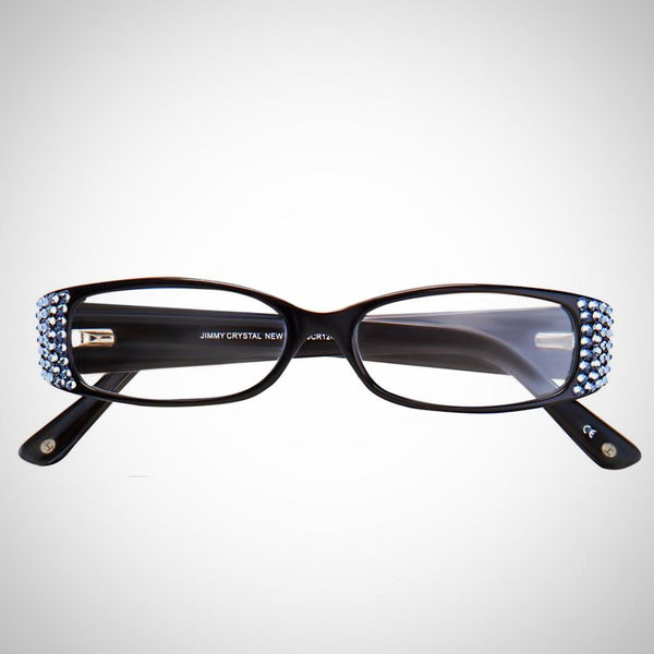 The handmade frame is cut from a single sheet of acetate to maintain consistency of color Polycarbonate lenses use the most impact-resistant material available for eyewear to offer maximum eye protection Features stunning crystals, which are set by Jimmy Crystal's expert...