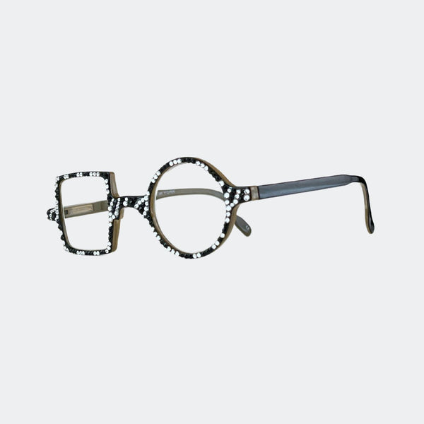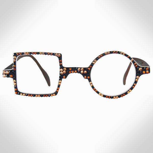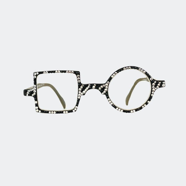 KATRINE - JCR562 combines technical sophistication and luxury. Its exclusive design features asymmetric circle and square reading glasses with handset crystals, plus a convenient carrying pouch and hard case. Enjoy sophisticated, stylish eyewear for your reading needs.