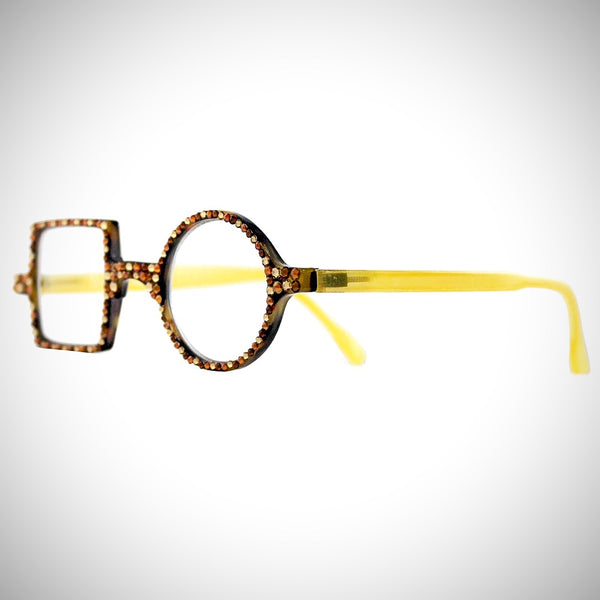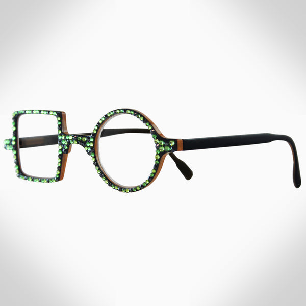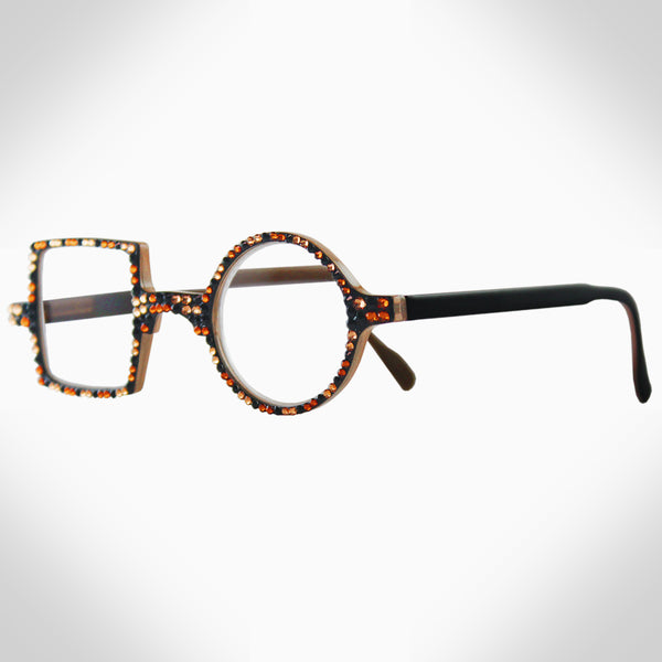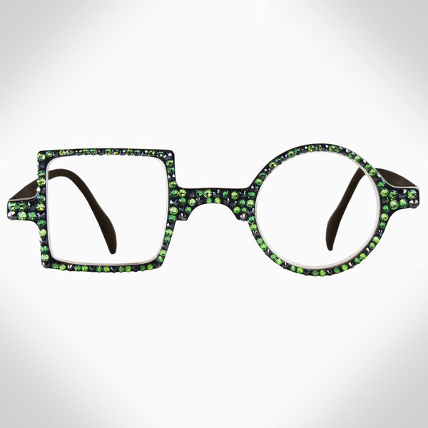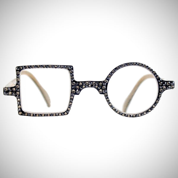 KATRINE - JCR562 combines technical sophistication and luxury. Its exclusive design features asymmetric circle and square reading glasses with handset crystals, plus a convenient carrying pouch and hard case. Enjoy sophisticated, stylish eyewear for your reading needs.