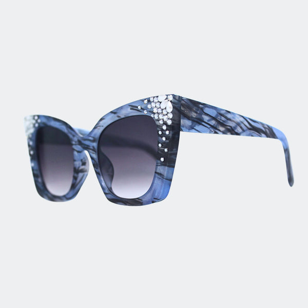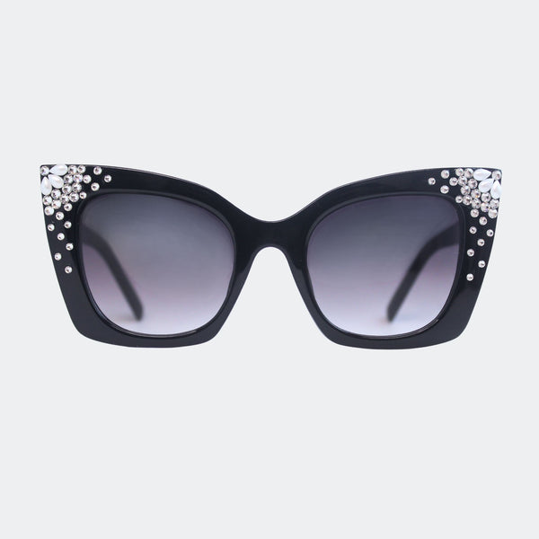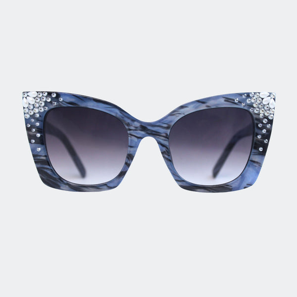 The LOU - GL1770 is an oversized, rectangular-frame sunglasses hand-set with skillful precision by Jimmy Crystal with a spectacular collection of crystals, suited for the most highly-regarded standards of sophistication. Each pair includes a protective pouch and case.