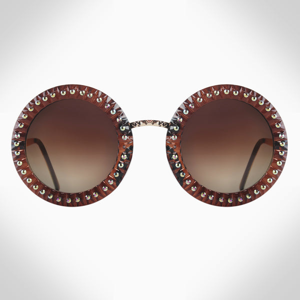 MARGARET - GL1733 ROUND SUNGLASSES Metal & plastic frame Polycarbonate color lenses use the most impact-resistant material available for sunglasses to offer maximum eye protection Features stunning crystals, which are set by Jimmy Crystal's expert craftsmanship. This product provides unparalleled...