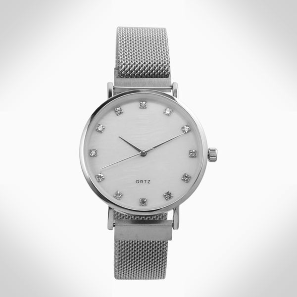 Elegant watch featuring sparkling crystals accents on the watch face Embellished with crystals, which are set by Jimmy Crystal's expert craftsmanship. This product provides unparalleled aesthetics to transcend elegance Stainless steel case back Magnetic metal wristband. One size fits all Watch...