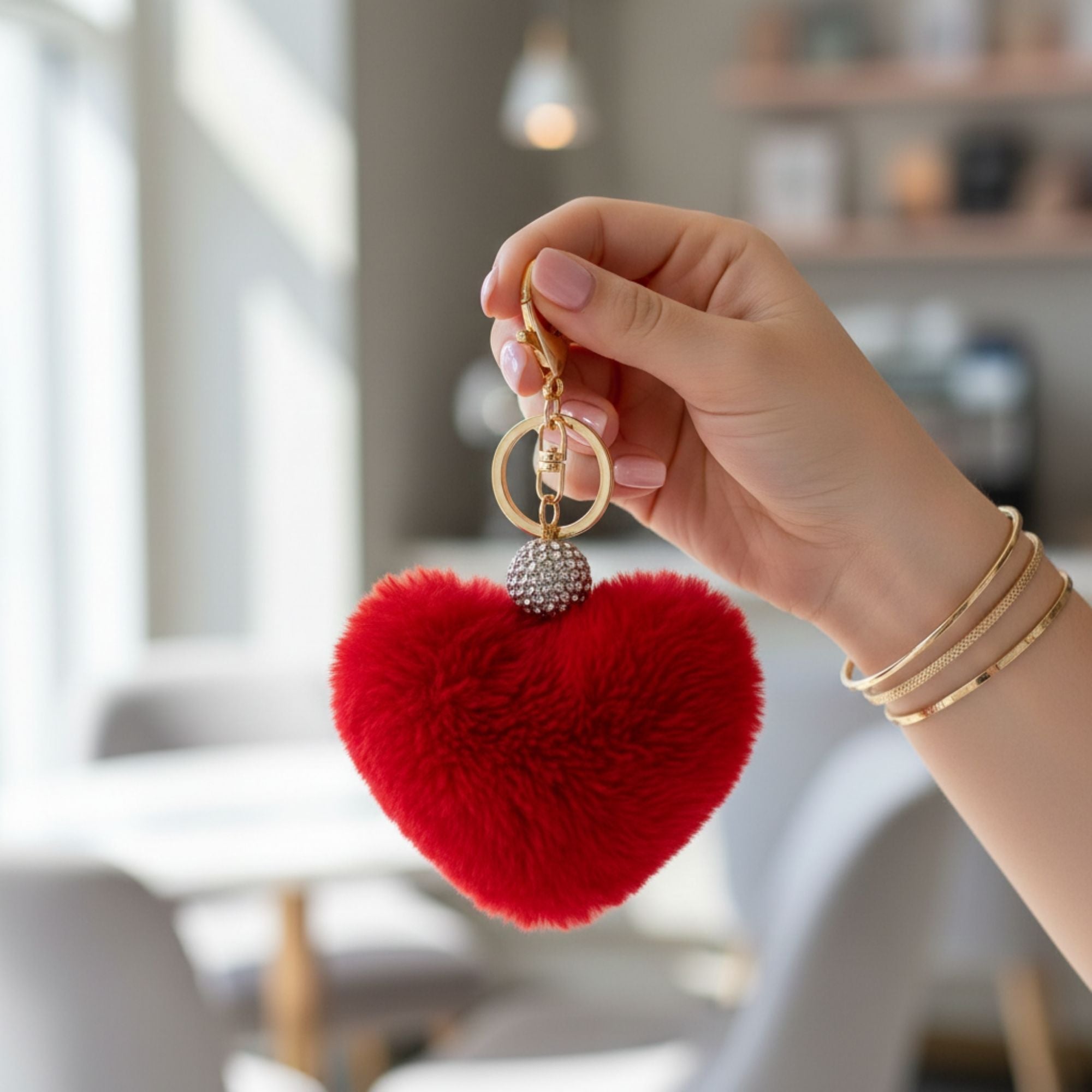 The AJ01 pom pom charm combines practical functionality with refined aesthetics. Designed as both a key organizer and versatile bag accessory, this heart-shaped piece measures 3" x 3.5" and attaches seamlessly to handbags, backpacks, and purses. Its sophisticated construction makes it an ideal gift for discerning recipients or a thoughtful personal accessory.