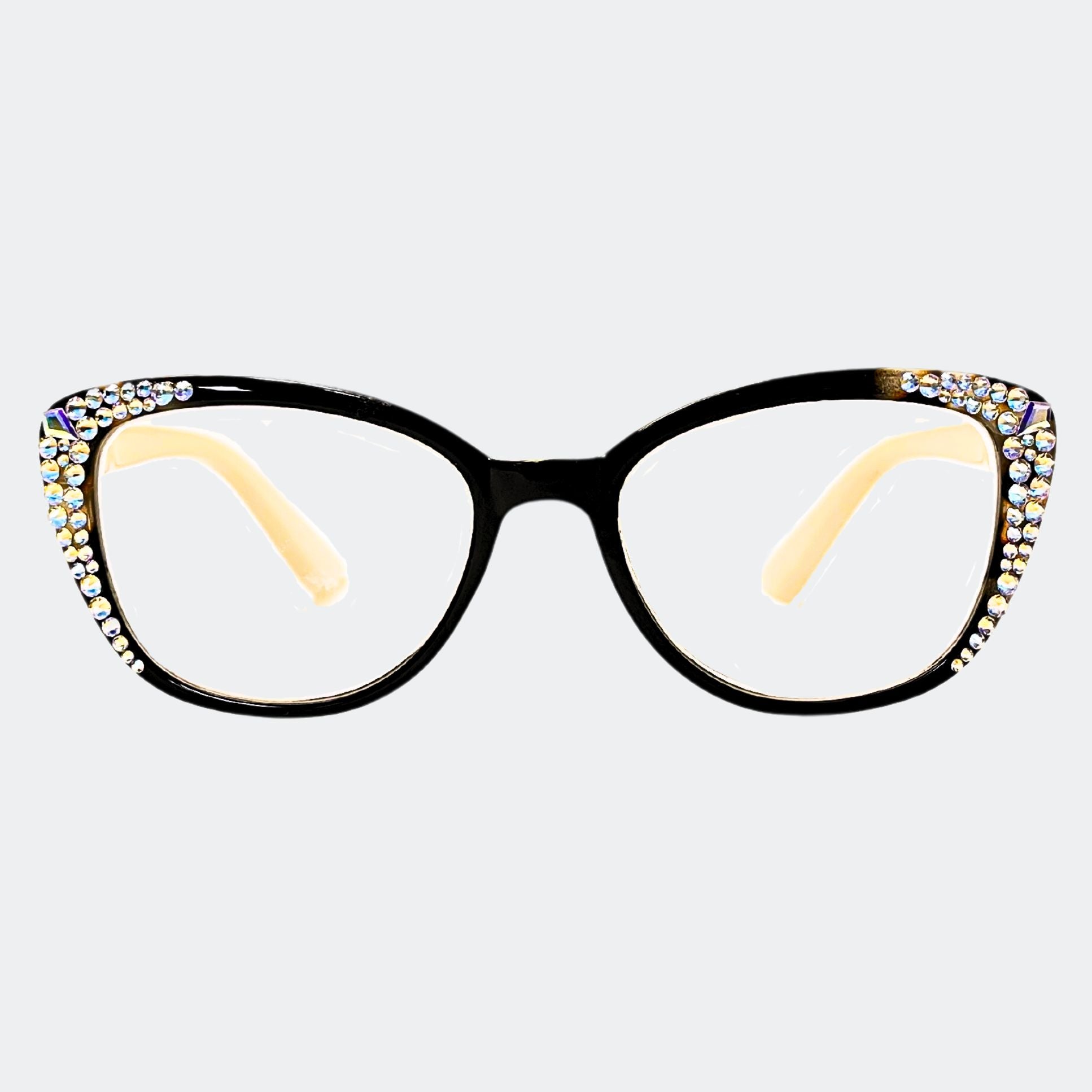 The REN - JCR676 cat-eyed reading glasses deliver a stylish injection frame embellished with intricate, hand-set crystals. A velvet lined carrying case and pouch ensure safe transport and storage, allowing you to bring this luxury design to any special event. Frame width: 5.25"