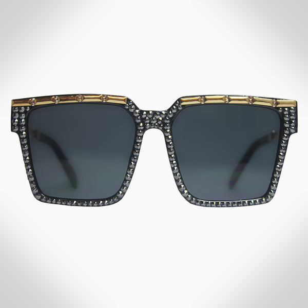 ROSARIO - GL1668 Oversized Sunglasses Injection frame Polycarbonate lenses use the most impact-resistant material available for sunglasses to offer maximum eye protection Features stunning crystals, which are set by Jimmy Crystal's expert craftsmanship. This product provides unparalleled aesthetics to transcend...