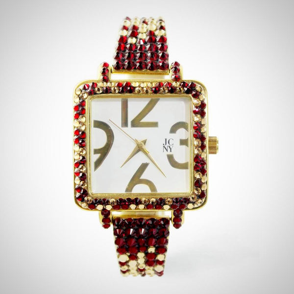 Elegant silver-tone watch featuring sparkling crystals accents on both bezel and bracelet Embellished with crystals, which are set by Jimmy Crystal's expert craftsmanship. This product provides unparalleled aesthetics to transcend elegance. Mineral glass protects watch from scratches Stainless steel case...
