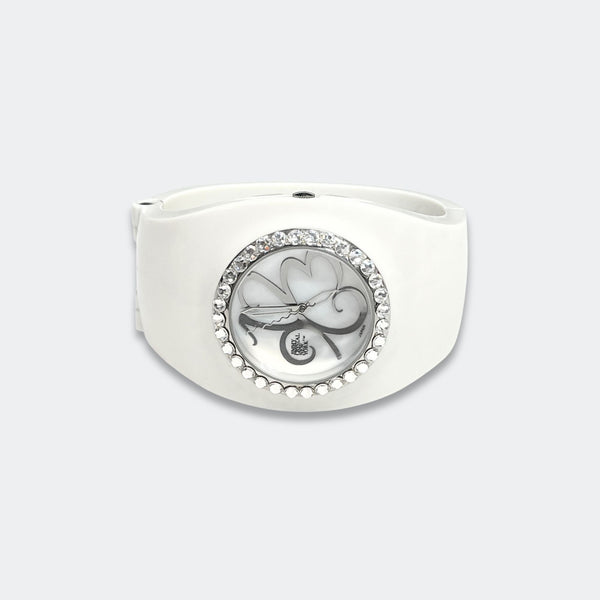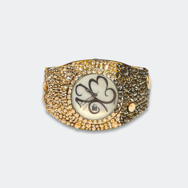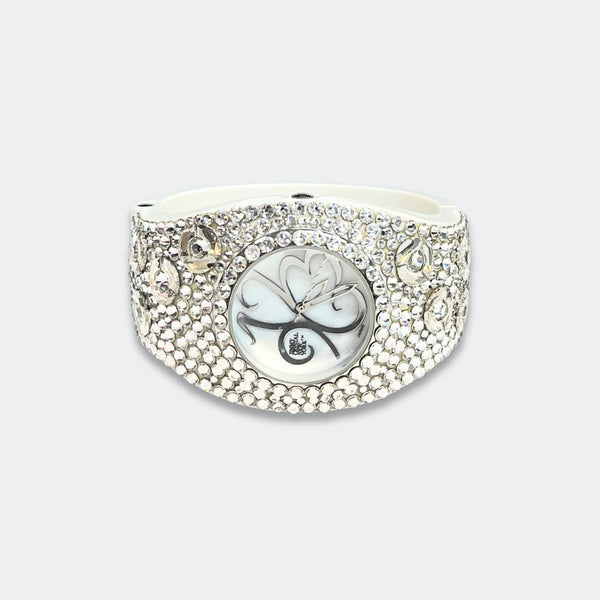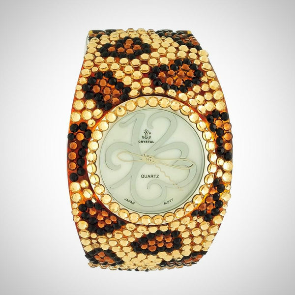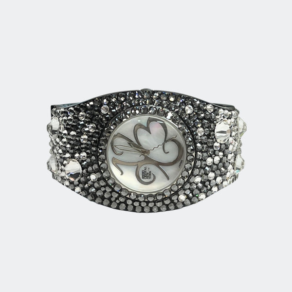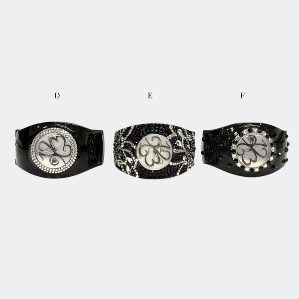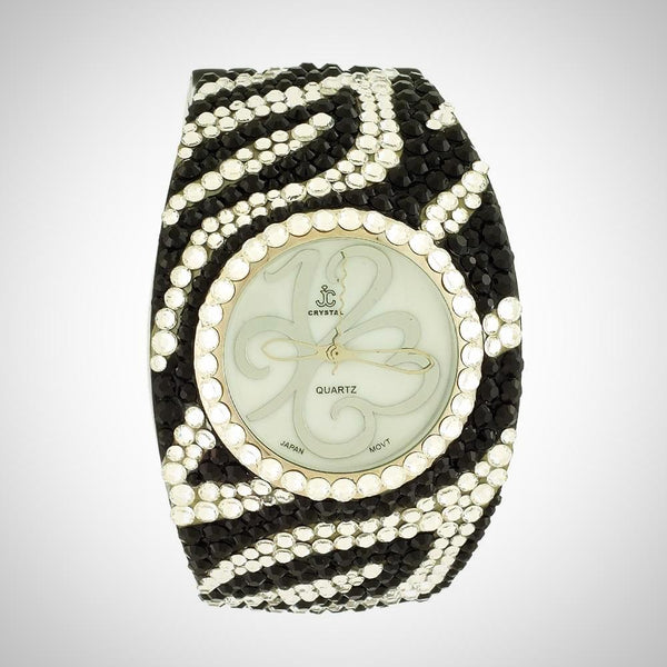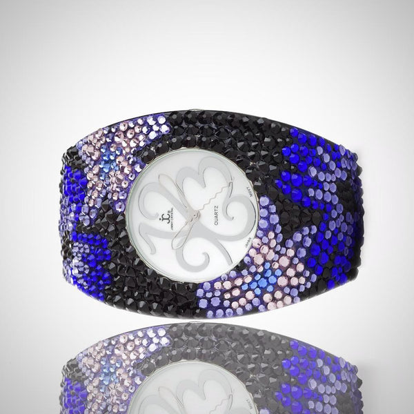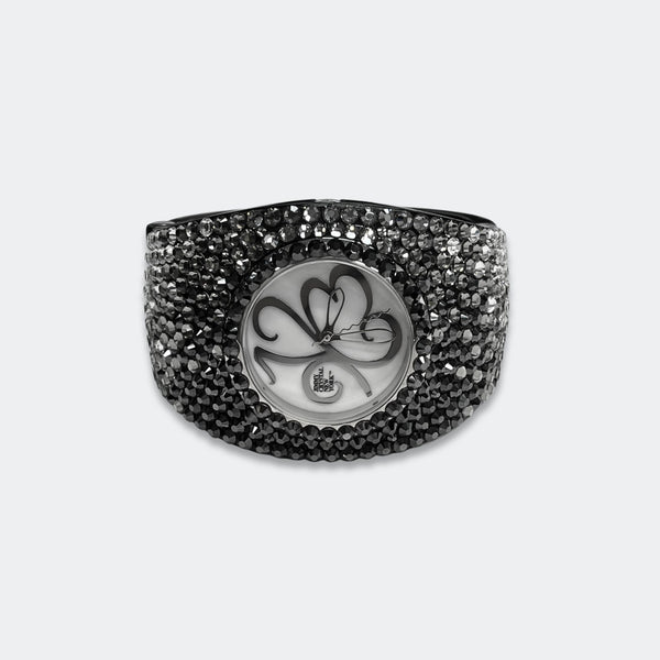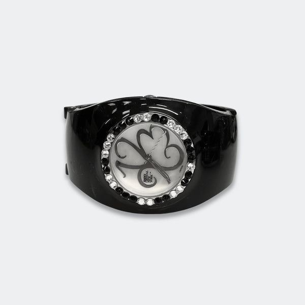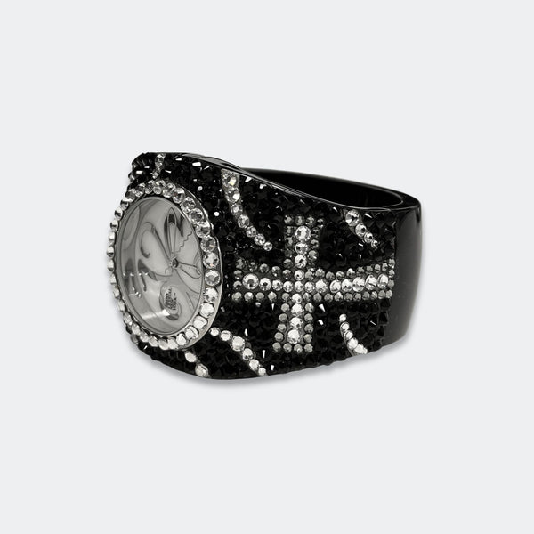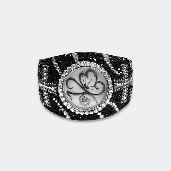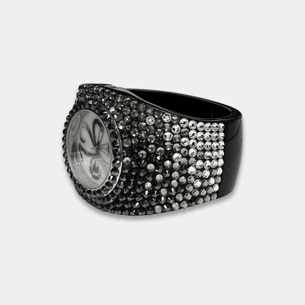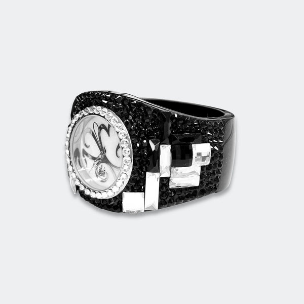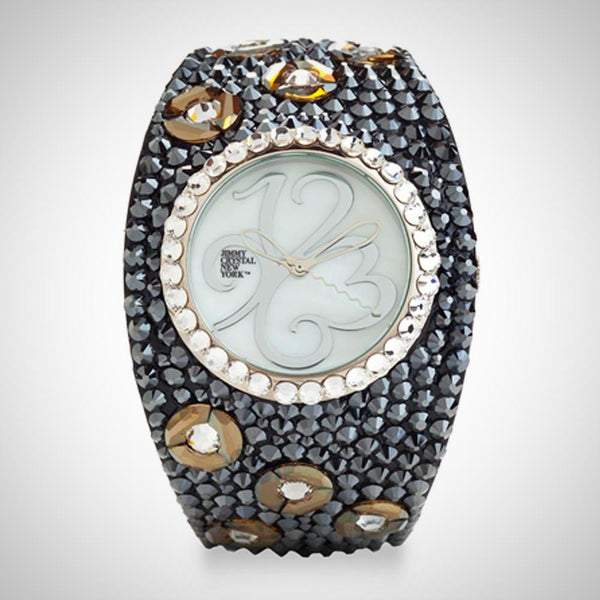 ALL SALES ARE FINAL Elegant black-tone watch featuring sparkling crystals accents on both the bezel and bangle Embellished with crystals, which are set by Jimmy Crystal's expert craftsmanship. This product provides unparalleled aesthetics to transcend elegance. JCNY logo at 12...