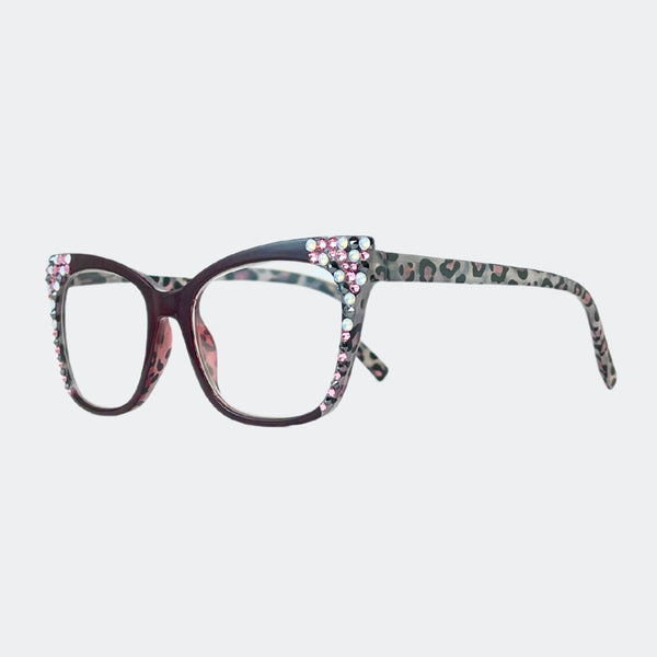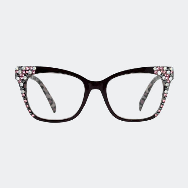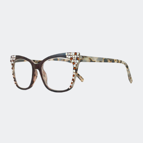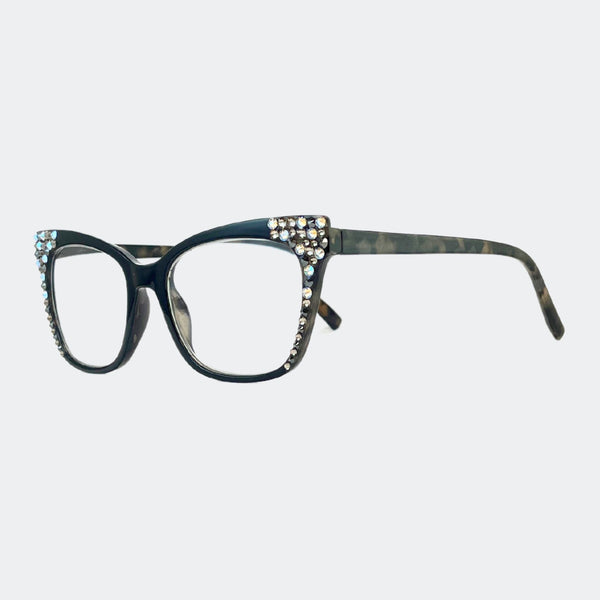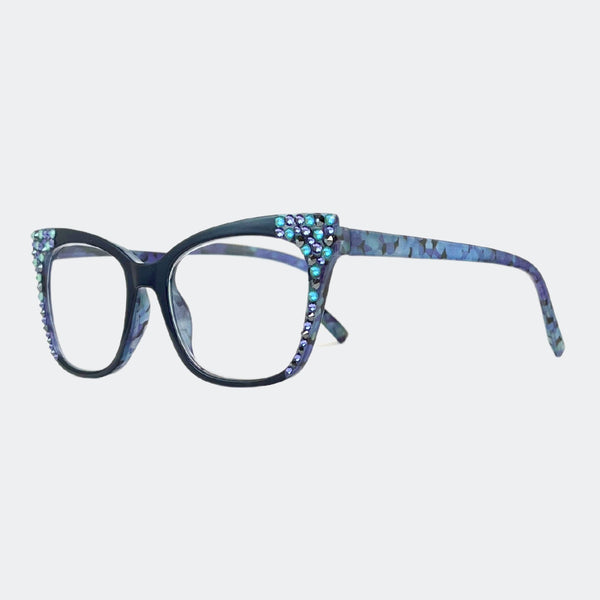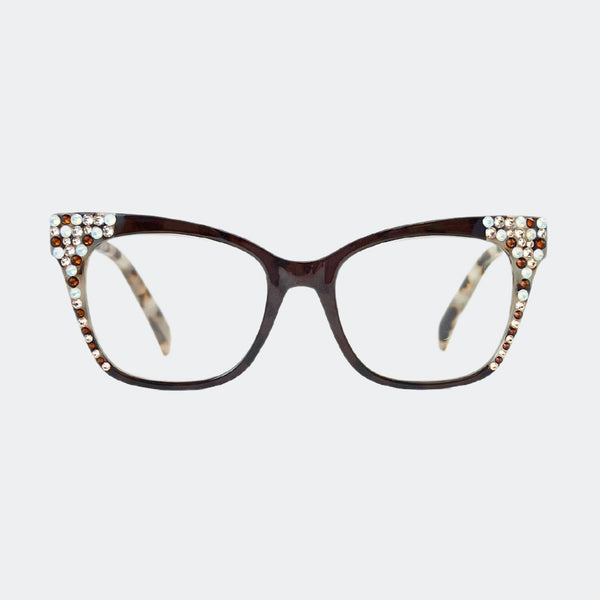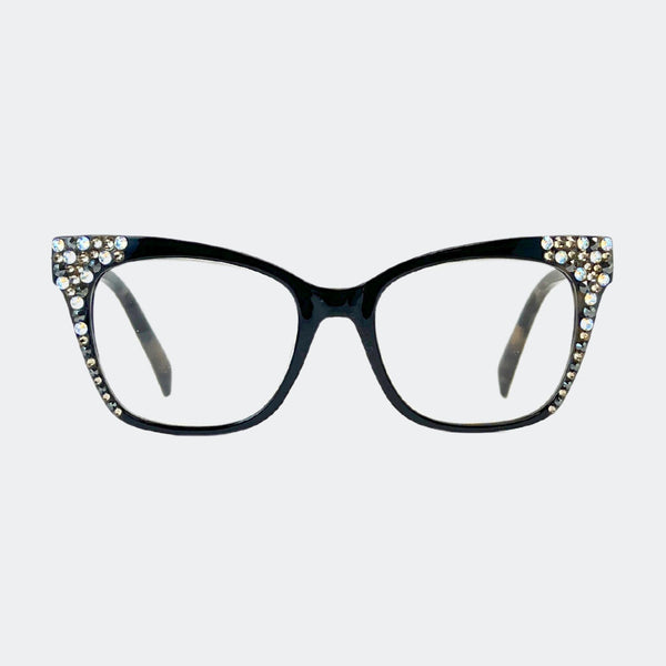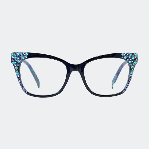 SARDINIA - JCR685 reading glasses offer a contemporary look featuring sparkling, bedazzled accents. With a lightweight construction, they're designed to stay comfortable all day, while providing crystal clear vision. Glasses width: 5.5 inch. With an included velvet lined carrying case...