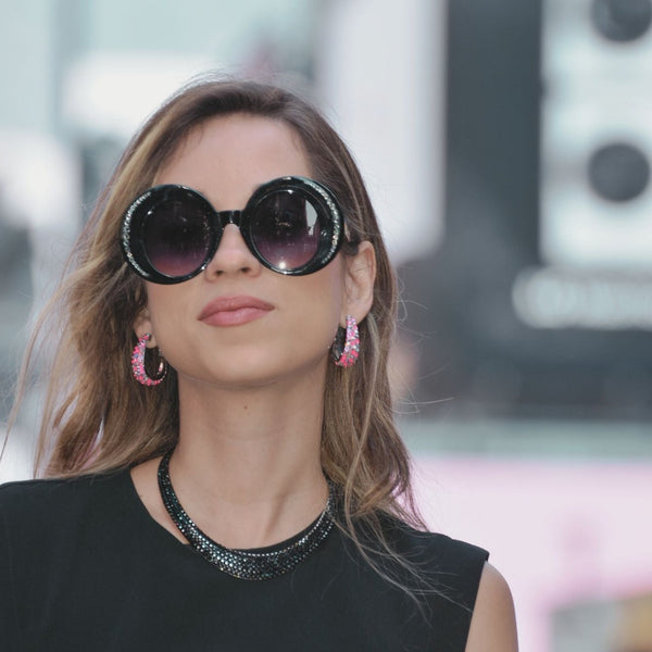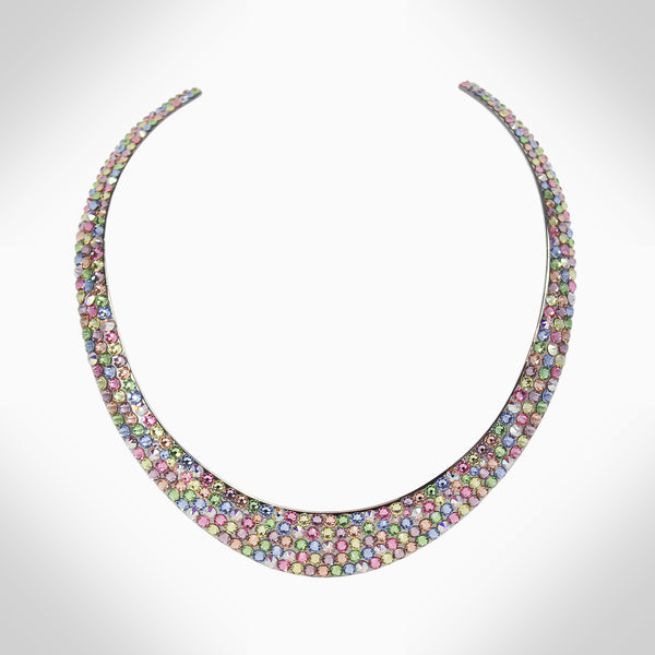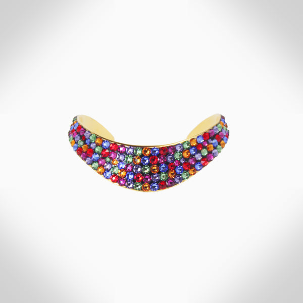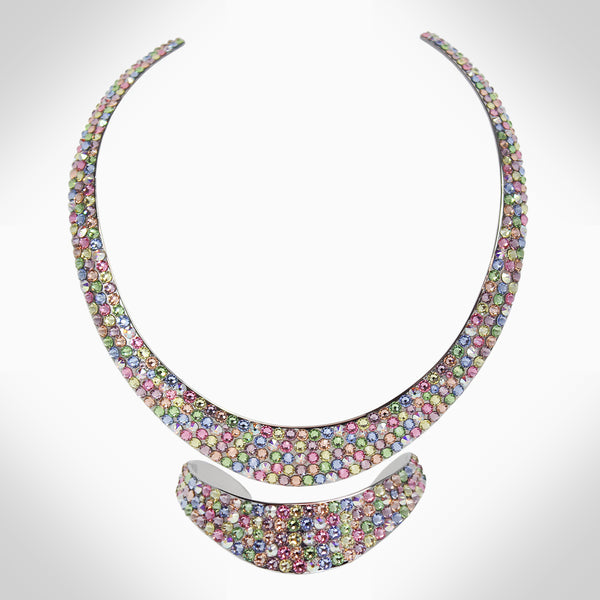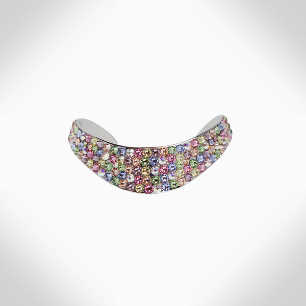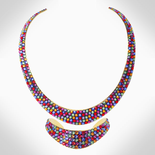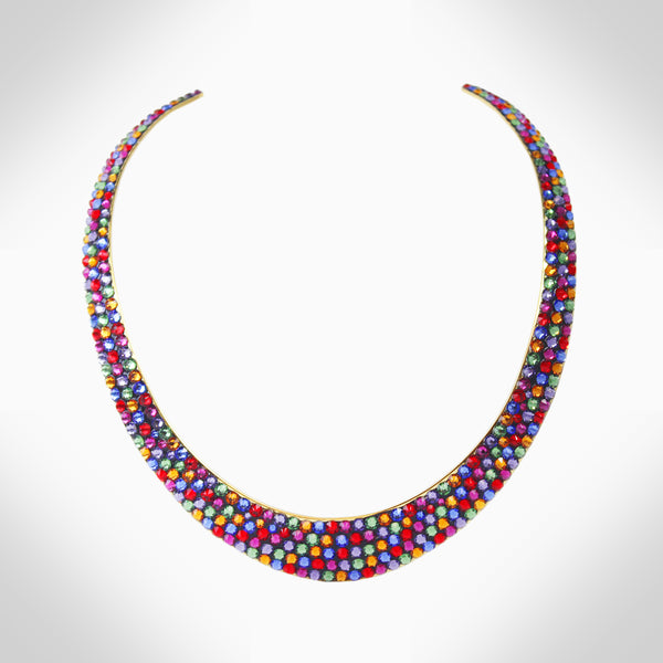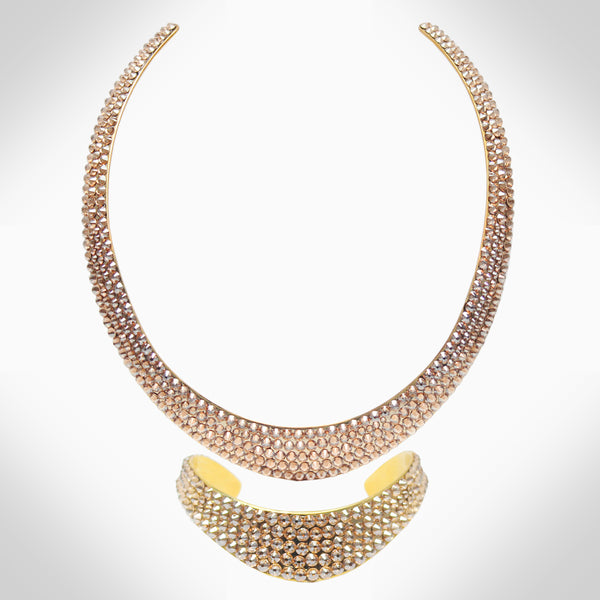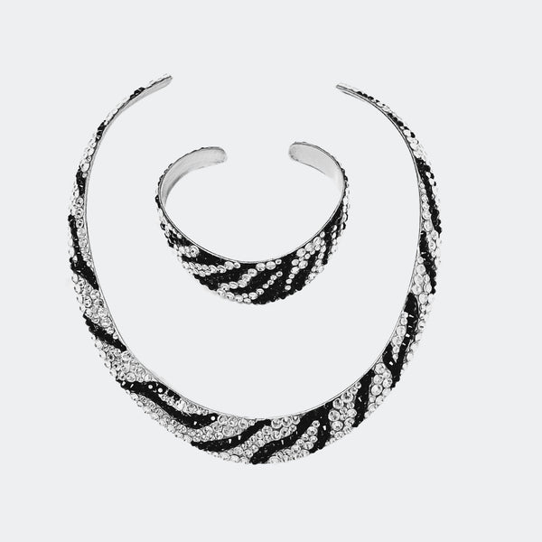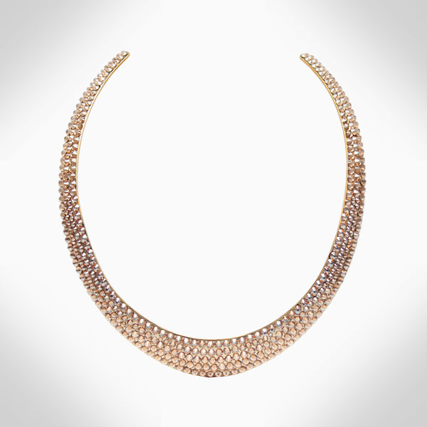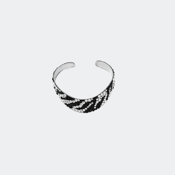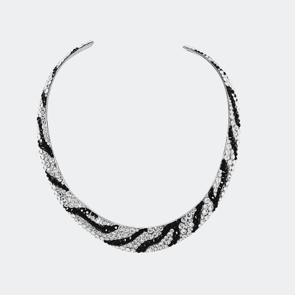 Embellished with sparkling crystals, this elegant interlock bangle adds a distinctive touch to your look Features stunning crystals - combining aesthetics with expert craftsmanship to take your wardrobe to that next level Adjustable 2.25" diameter, chocker: 14" Length, 0.42" Width...