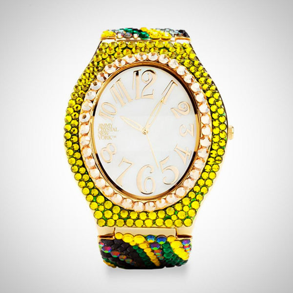 Embellished with crystals, which are set by Jimmy Crystal's expert craftsmanship. This product provides unparalleled aesthetics to transcend elegance. MOP watch face Stainless steel case back Miyota Japanese movement IPS plating Nickel & lead-free Includes both a case and a...