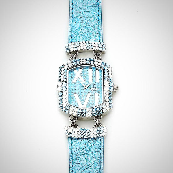 Embellished with crystals, which are set by Jimmy Crystal's expert craftsmanship. This product provides unparalleled aesthetics to transcend elegance Leather belt Nickel & lead free Includes both a case and a pouch