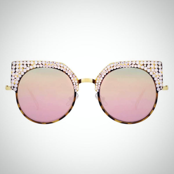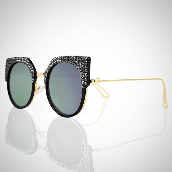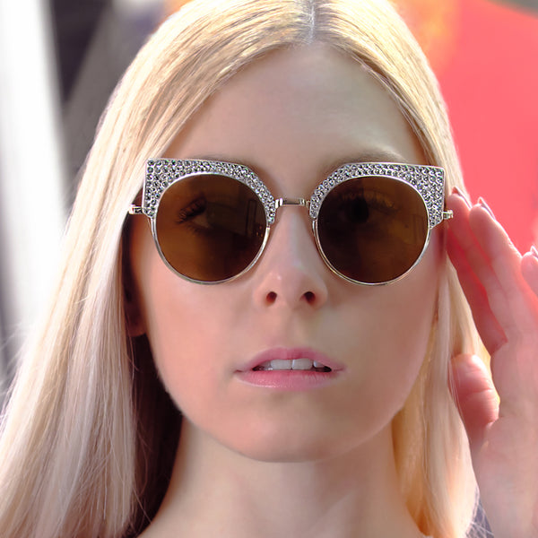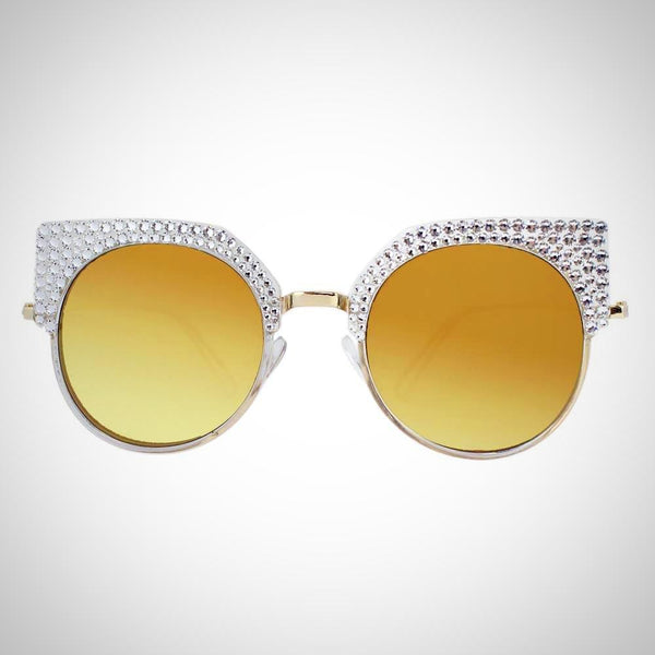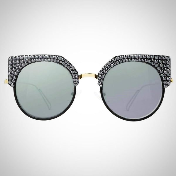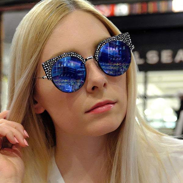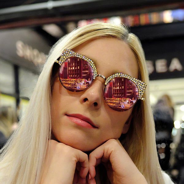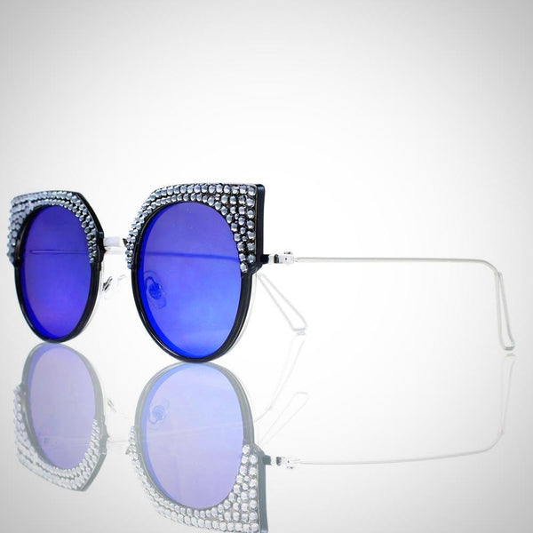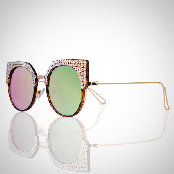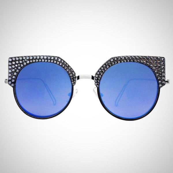 Features stunning Crystals, which are set by Jimmy Crystal's expert craftsmanship. This product provides unparalleled aesthetics to transcend elegance. Plastic and metal frame Mirrored lenses made with a selection of multi colors PVC nose pads prevent slipping and minimize pressure...