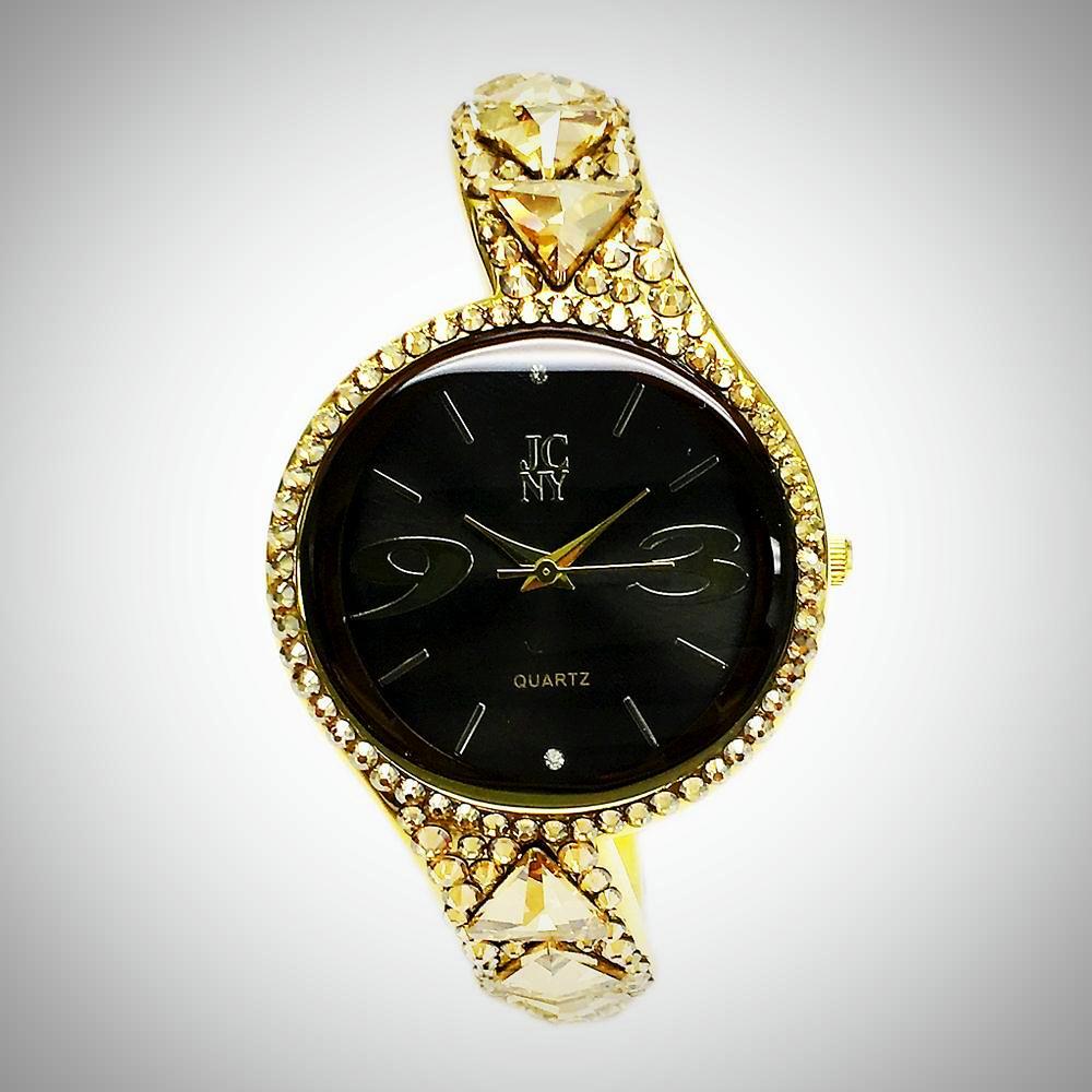 - Elegant silver-tone watch featuring sparkling crystals accents on both the bezel & bangle