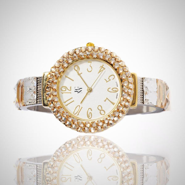 PRODUCT DETAILS Elegant silver-tone watch featuring sparkling crystals accents on both bezel and bracelet Embellished with crystals, which are set by Jimmy Crystal's expert craftsmanship. This product provides unparalleled aesthetics to transcend elegance. JCNY steel logo at 12 o'clock position...