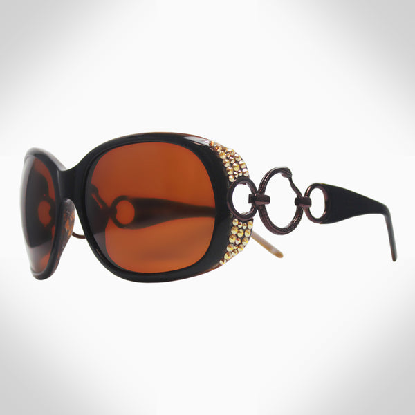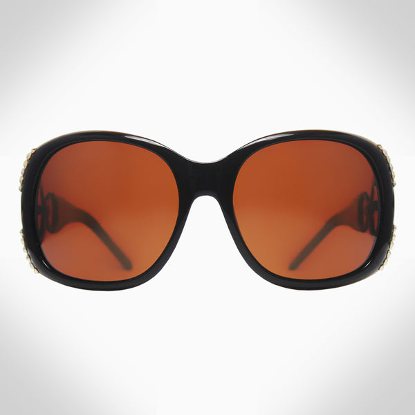 ZASHA - GL1013 - NEW - CARAMEL JET BLACK - Crystal Oversize Handmade frame is cut from a single sheet of acetate to maintain consistency of color Polarized lenses are made with CR-39 for maximum vision protection against harmful sun rays...